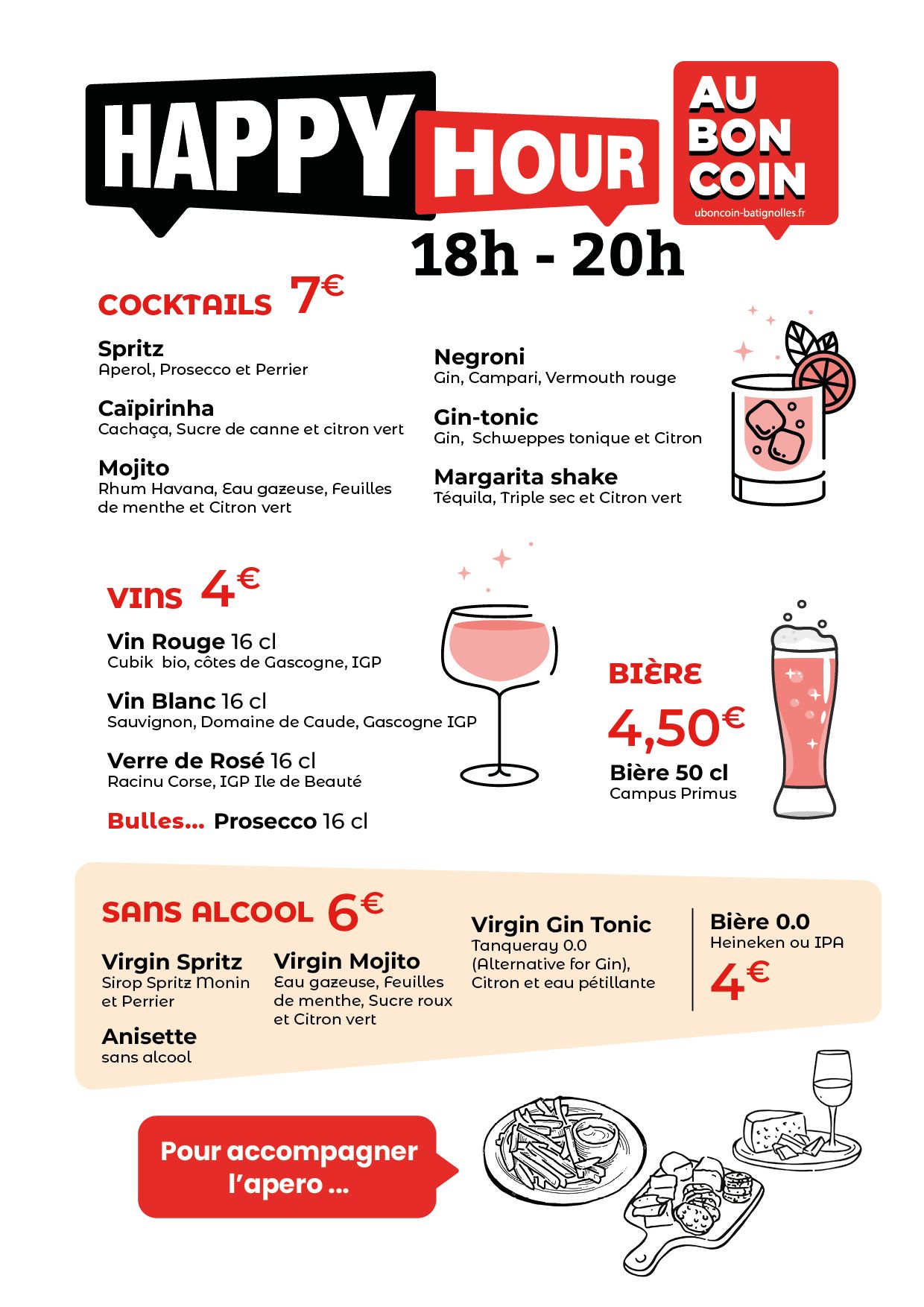 Charmant spot pour l’apéro, le Bon Coin propose également planches de cochonnaille et fromages affinés pour commencer agréablement votre soirée.